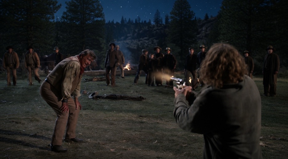 The most famous moment in The Cowboys is its sudden and violent climax. After a long and difficult drive, Andersen’s team of young cowboys encounters Asa Watts and his gang of cattle rustlers. In the final confrontation, Wil Andersen physically bests Watts in a fistfight – a moment where audiences expect the hero to win. However, just as Andersen turns away from the fallen villain, Watts reaches for a hidden gun. In an instant, Watts shoots Andersen from behind. Andersen is struck multiple times (in the arm, leg, and back) and collapses to the ground. The rancher, who had been the boys’ mentor and father-figure, later succumbs to his injuries. The boys witness their adoptive father fall and die, which is a truly shocking moment. Unlike typical Westerns where the hero bravely wins the final battle, here the hero is taken down suddenly, reversing the expected outcome.